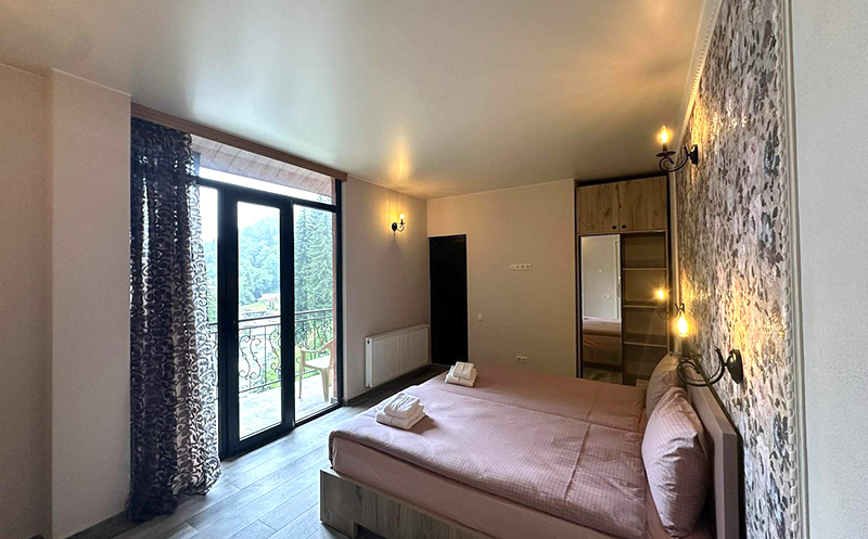 - სტანდარტული ნომერი 2 სტუმარზე ფრანგული აივნით, ხედით მდინარესა და კურორტზე (მეოთხე სართული) - 450 ლარი 600 ლარის ნაცვლად ( ჯავშნის კოდი 30 ლარი)