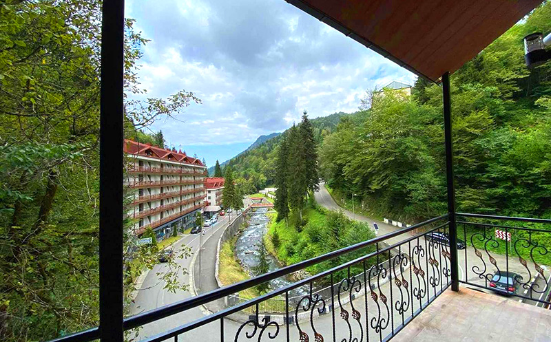 - სტანდარტული ნომერი 2 სტუმარზე აივნით და ხედით მდინარესა და კურორტზე (მეორე სართული) - 370 ლარი 500 ლარის ნაცვლად (ჯავშნის კოდი 25 ლარი)
