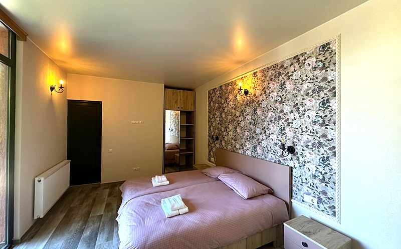 - სტანდარტული ნომერი 2 სტუმარზე ხედით ტერასაზე (პირველი სართული) - 300 ლარი 400 ლარის ნაცვლად (ჯავშნის კოდი 25 ლარი)