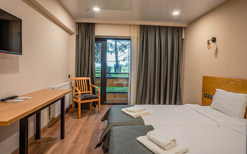სტანდარტული ორადგილიანი ნომერი (DOUBLE/TWIN) ხედით და აივნით - 161 ლარი 202 ლარის ნაცვლად