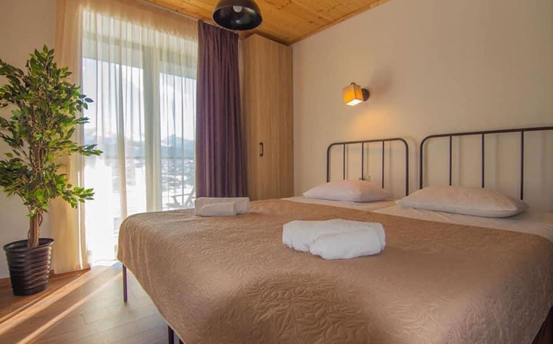 გთავაზობთ კეთილმოწყობილ, კომფორტულ ნომერს სასტუმრო პანორამა მგზავრებში დიდი აივნით და ულამაზესი ტყის ხედით.
