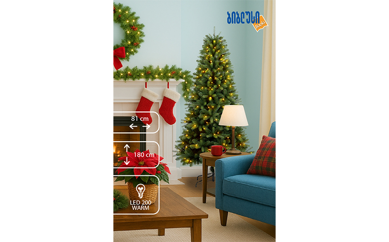 შეთავაზებაში შედის: ნაძვის ხე 180სმ ALASKA მწვანე განათებით და უფასო მიტანით 'ბიბლუსი / Biblusi'-სგან