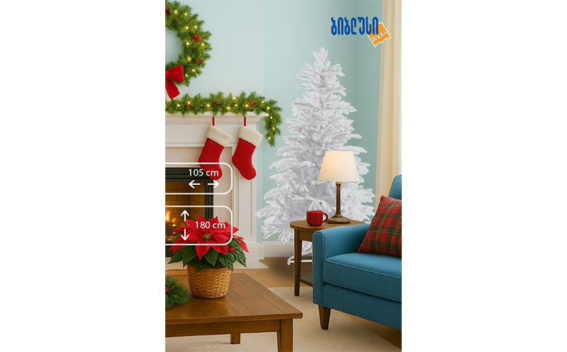 შეთავაზებაში შედის: ნაძვის ხე 180სმ თეთრი უფასო მიტანით 'ბიბლუსი / Biblusi'-სგან