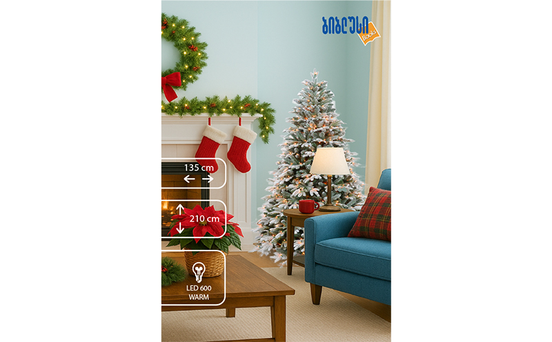 შეთავაზებაში შედის: ნაძვის ხე 210სმ SHARON მწვანე დათოვლილი განათებით და უფასო მიტანით 'ბიბლუსი / Biblusi'-სგან