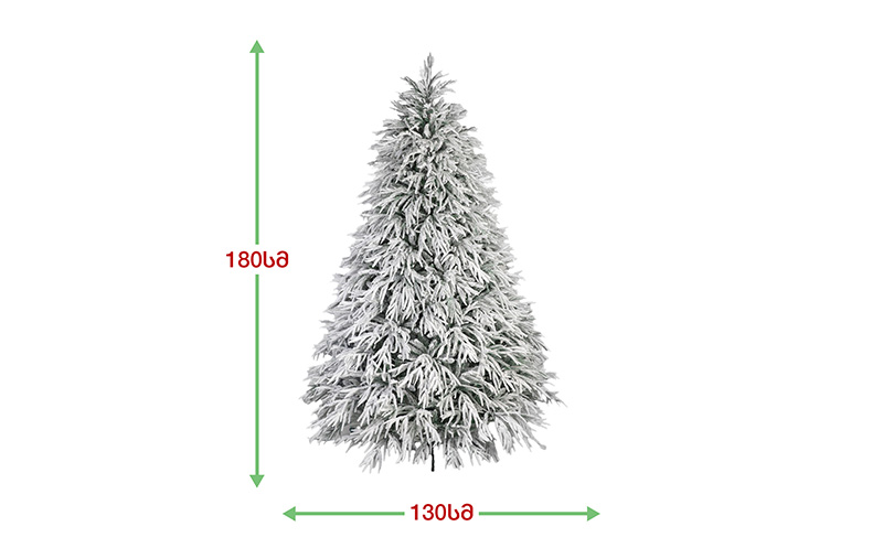 ბუნებრივის მსგავსი დათოვლილი ნაძვის ხე, დრეკადი მეტალის ტოტებით და ჯანმრთელობისთვის უსაფრთხო მასალისგან დამზადებული შერეული ორი სახეობის სილიკონის და PVC წიწვით . მეტალის მყარი სადგამით და მთავარი ღერძით.