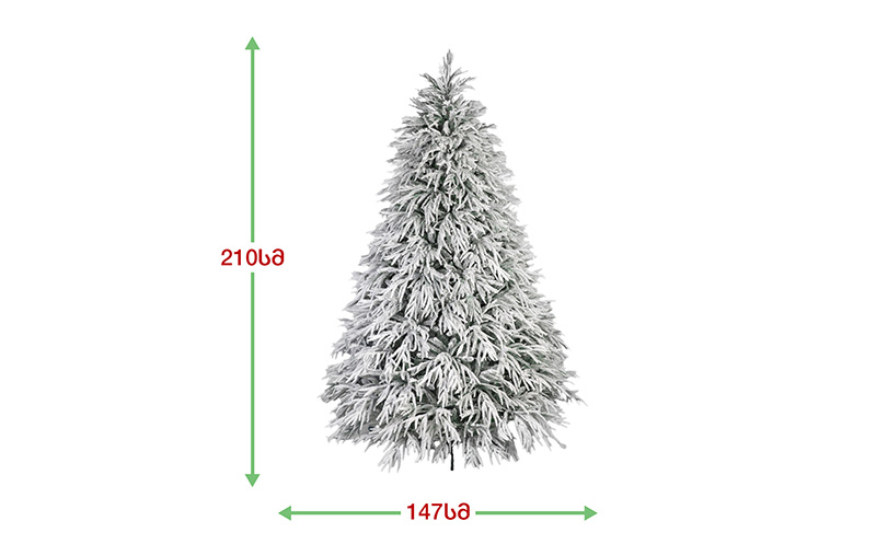 ბუნებრივის მსგავსი დათოვლილი ნაძვის ხე, დრეკადი მეტალის ტოტებით და ჯანმრთელობისთვის უსაფრთხო მასალისგან დამზადებული შერეული ორი სახეობის სილიკონის და PVC წიწვით . მეტალის მყარი სადგამით და მთავარი ღერძით.