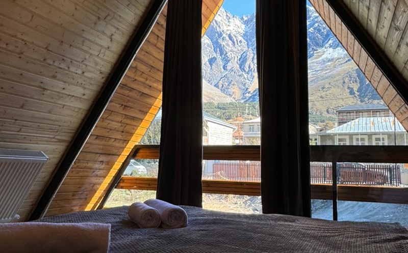 შეთავაზებაში შედის: ყაზბეგში, კოტეჯი 2 ან 4 სტუმარზე ვერანდით