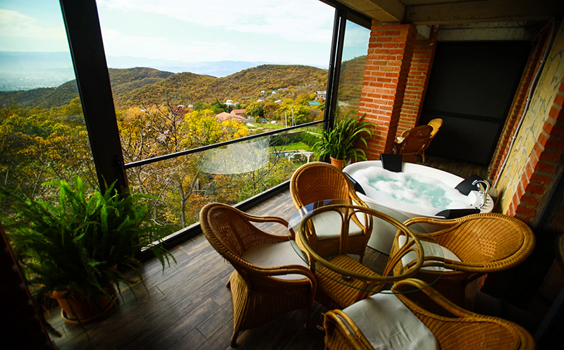შეთავაზებაში შედის: ვილა 2 ან 6 სტუმარზე ჯაკუზით ტერასით და ბუხრით