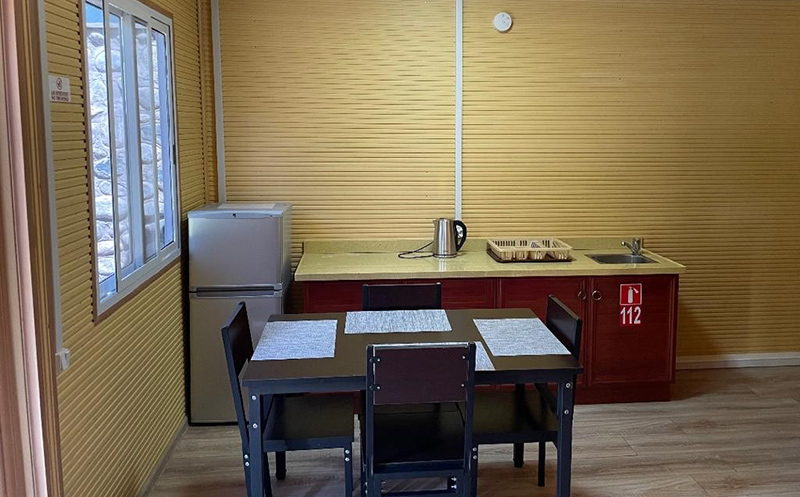 სამზარეულო აღჭურვილია, როგორც ჭურჭლით, ისე მაცივრითა და მადუღარით. კოტეჯებში არის ელექტო გამათბობლები, ინტერნეტი (Wi-Fi) და საპარკინგე ადგილი.