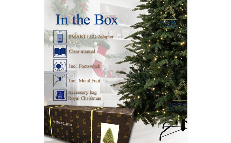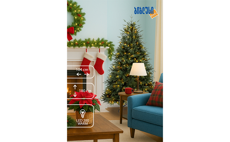 შეთავაზებაში შედის: ნაძვის ხე 180სმ PREMIUM SMART მწვანე განათებით და უფასო მიტანით 'ბიბლუსი / Biblusi'-სგან