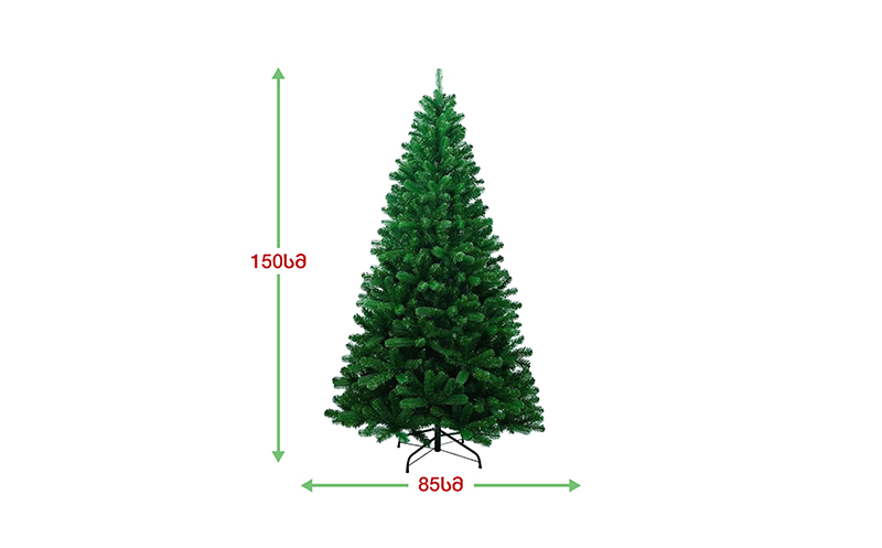 სადა მწვანე ნაძვის ხე გამძლე დრეკადი მეტალის ტოტებით და ჯანმრთელობისთვის უსაფრთხო მასალისგან დამზადებული წიწვებით. მეტალის მყარი სადგამით და მთავარი ღერძით.